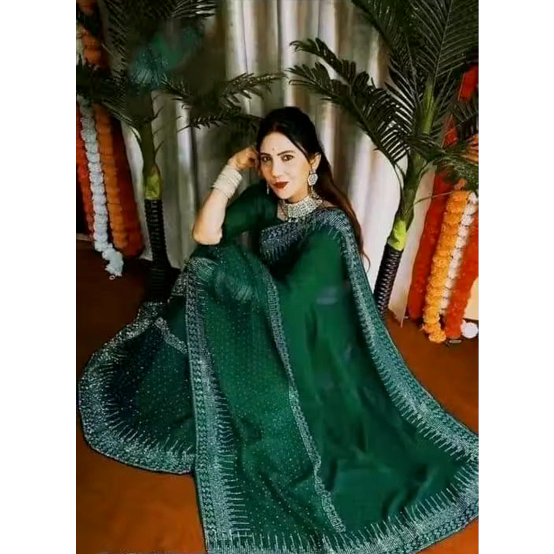 Bottle Green Sequin Embellished Georgette Saree