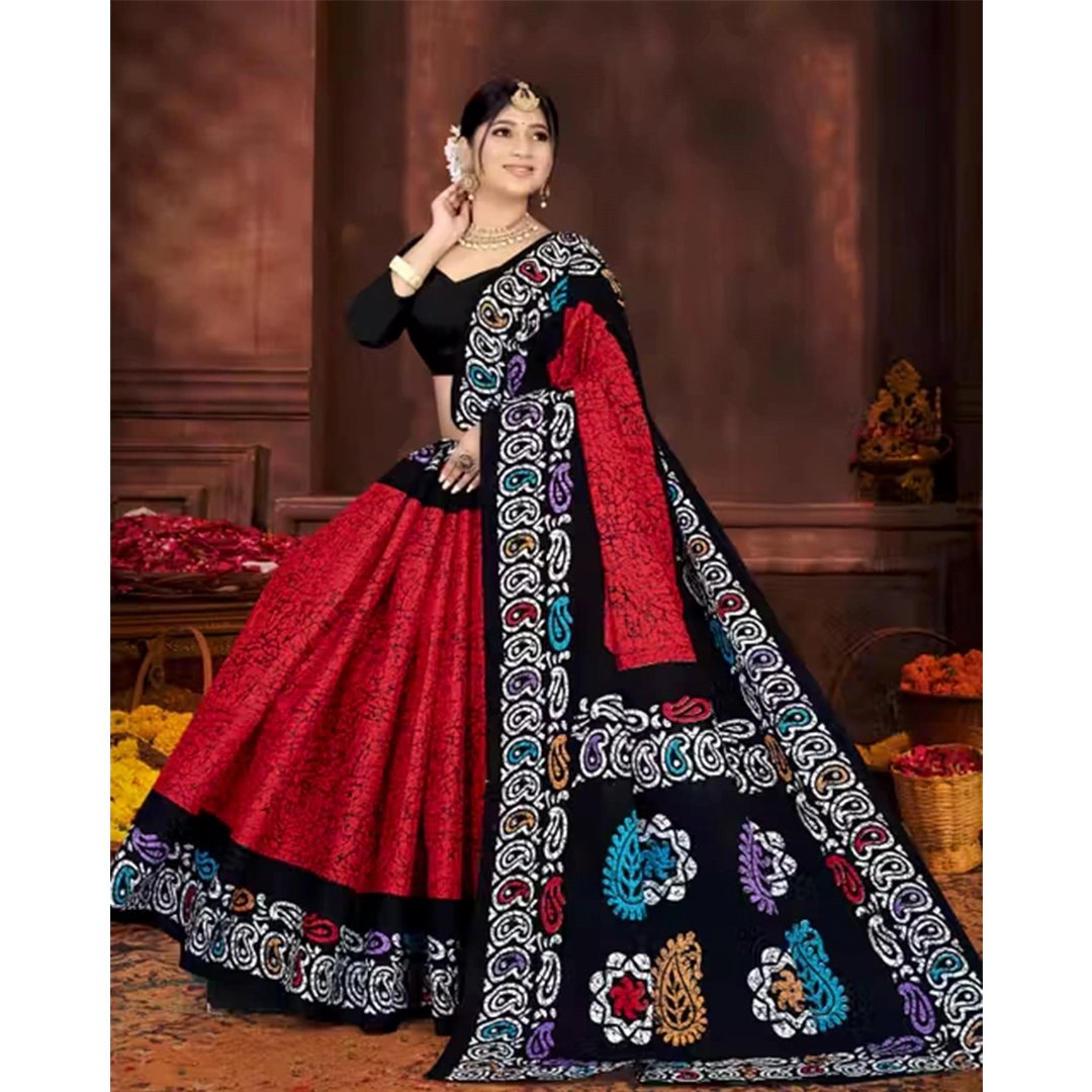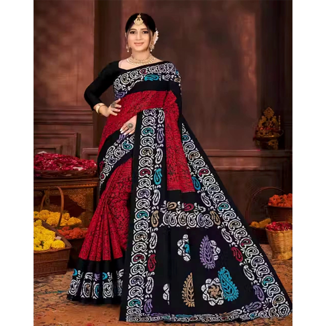 Classic Red & Black Kalamkari Print Cotton Saree