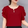 KHARIDLE Maroon Keyhole Neck Ruffle Sleeves Georgette Top
