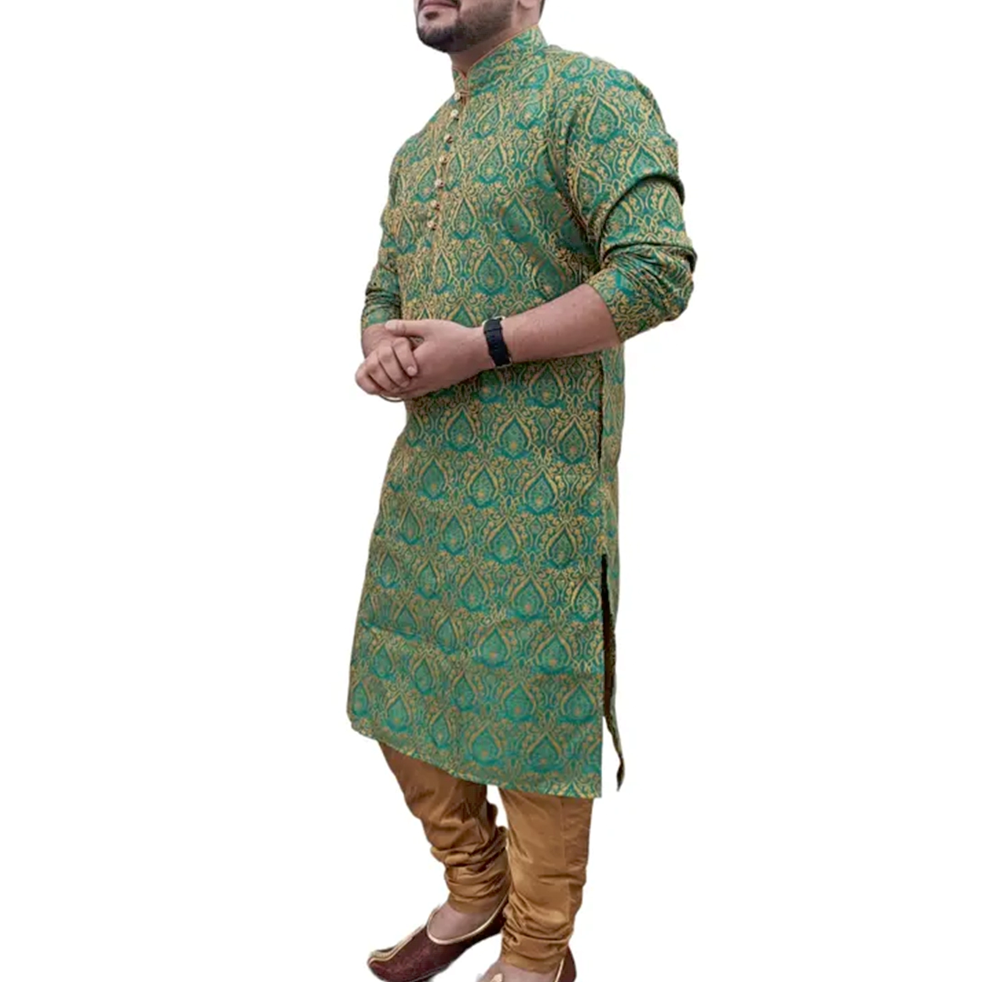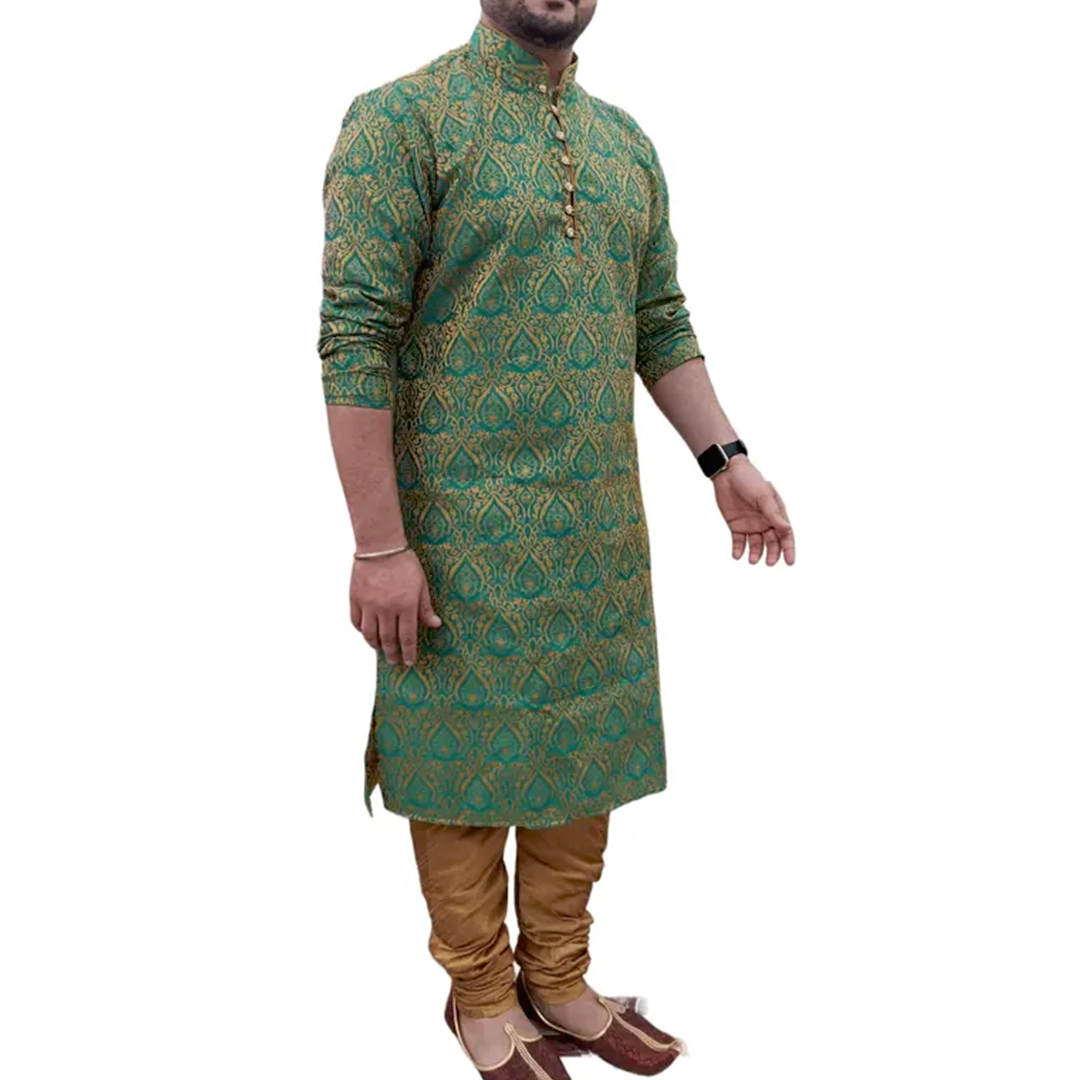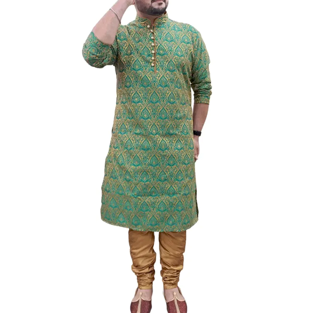KHARIDLE Men’s Jacquard Churidar Kurta Set